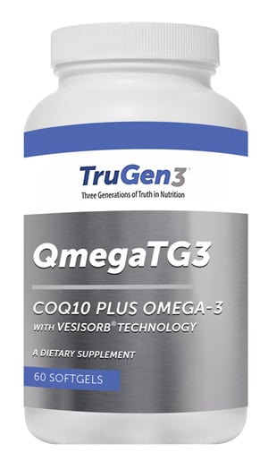 Coenzyme Q10 and omega-3 fatty acids are two of the most powerful allies in the fight against inflammaging. However, CoQ10 is hindered by low aqueous solubility and a relatively high molecular weight, leading to poor bioavailability after it is taken orally. Taking it with a fatty meal can somewhat improve absorption but patients don’t always comply with this advice or eat enough fat. Omega-3 absorption also is food dependent. To overcome these challenges, TruGen3 formulated its QmegaTG3 CoQ10-Omega-3 supplement using the VESIsorb® delivery system to improve bioavailability of CoQ10 and Omega-3s without being dependent upon food to enhance absorption.