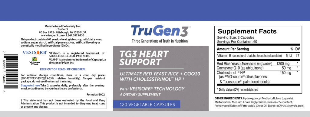 Red yeast rice (Monascus purpureus)……………..……….1200 mg